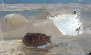 カワハギがいることが分かったので、甥っ子と二人で、カワハギ釣りに本格参入することにしました。甥っ子は、早速キュウセンベラやササノハベラを釣っています。私も小さいながらカワハギを釣ることができました。