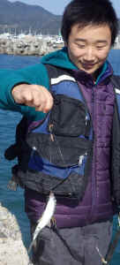 で、釣れたのは・・・ヒイラギでした。父は同じ投げ釣りでサビハゼを釣っています。いずれにせよ、投げ竿には、あまり面白い釣り魚は掛かりそうにないことが分かりました。