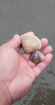 ということで、今日の釣果は、ハマグリ40個、ヒラガイ(コタマガイ)3個でした。重さはちょうど1キロでした。