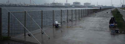 この釣り場は人気釣り場で、混んでいると思ったのですが、この天候で、人出は少なく、さらに雨が降り始めたところで、多くのグループが撤収を始めます。
