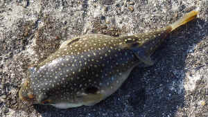 しかし、小さい当たり・・・・やはり上がってきたのはクサフグでした。