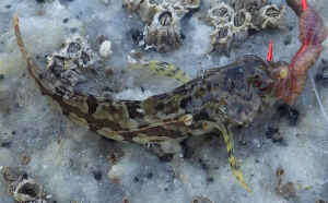 一度、3センチほどの小さな魚が掛かりました。なにかな〜〜とよく見ると、アサヒアナハゼでした。