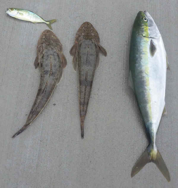 ということで、今日の釣果はマゴチ2匹、ワカシ1匹、フグ多数でした。