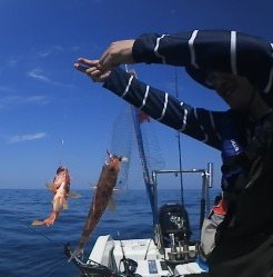 底はカサゴの生育地帯のようです。これでは小さすぎて食べることも難しいので、リリースです。