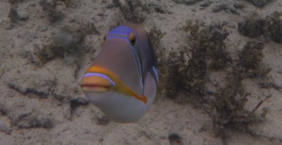 シュノーケリングでは、ムラサメモンガラがカメラに向かってくるので驚きました。この魚、元々活発な魚ですが、特に産卵期には攻撃的になって、ダイバーに噛みつくこともあるそうです。