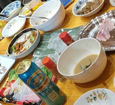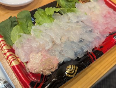 クロムツの刺身と炙りは写真を撮るのを忘れました。飲み会途中のテーブルの上、右端にちょっと写っていました。