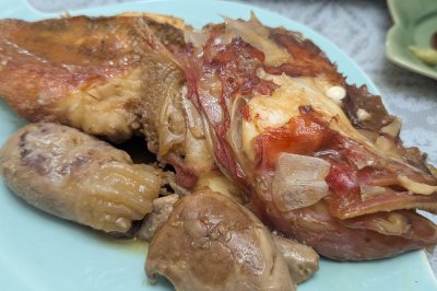 カサゴはFukuさんにトレードしたので、オニカサゴが家内の好きな煮つけになりました。写真の下側は肝と胃袋です。カサゴ類はコリコリの胃袋も美味しいですよね。