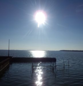 私はとりあえずカニ網を投げ込みます。ほぼ日が沈みました。